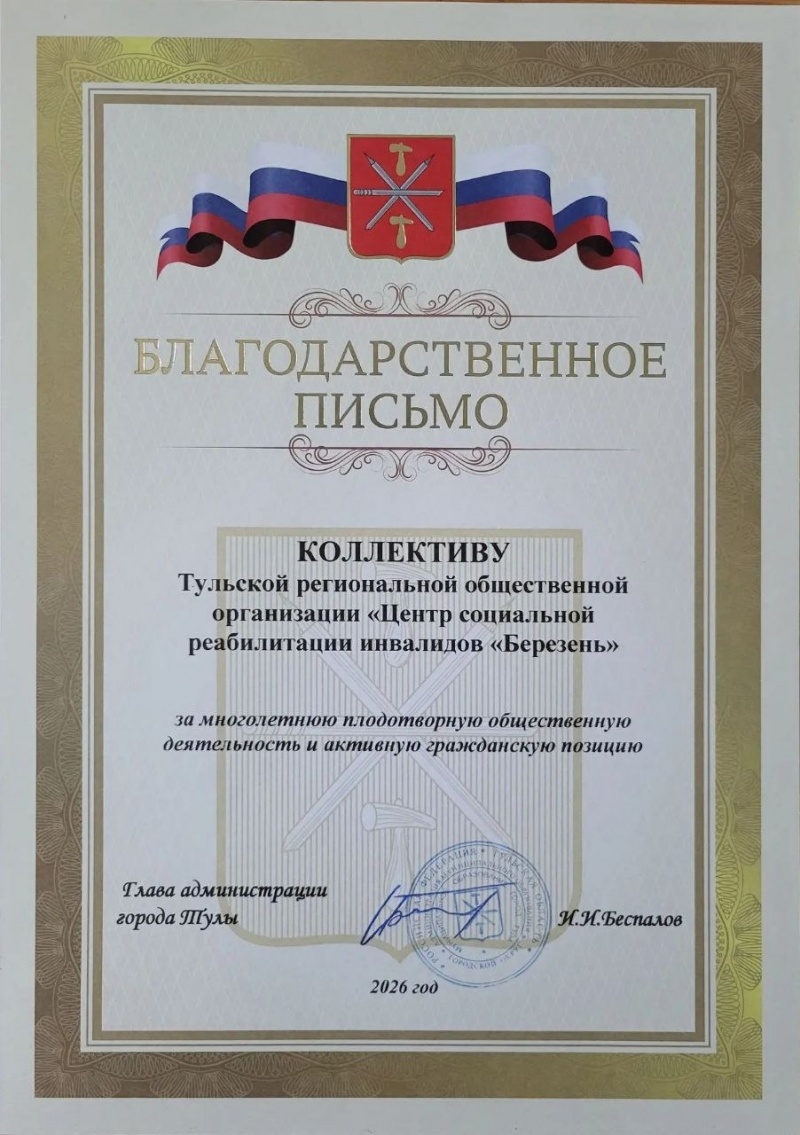 © Тульская региональная общественная организация «Центр социальной реабилитации инвалидов «БЕРЕЗЕНЬ», 2026